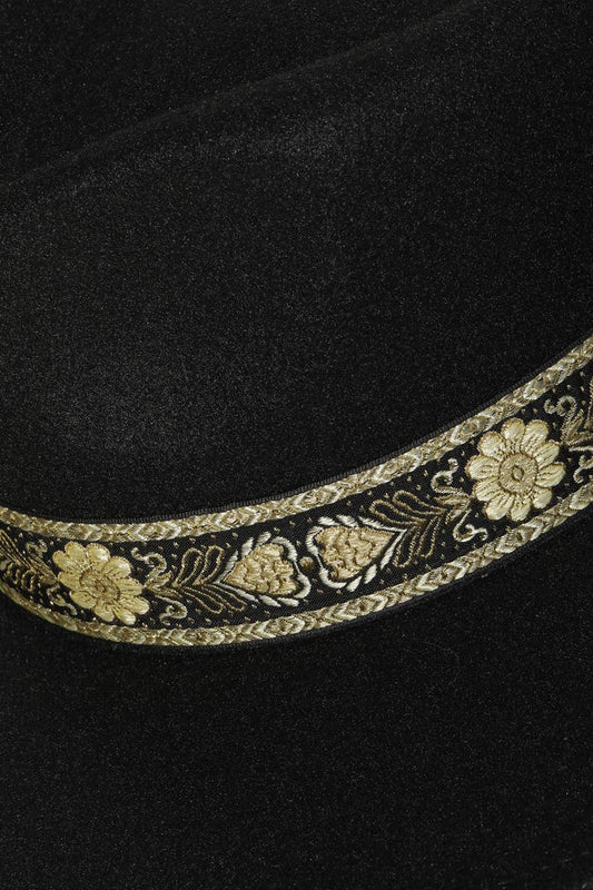 Embroidered Strap Fedora Fashion Hat