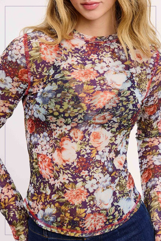 La Miel Floral Mesh Top