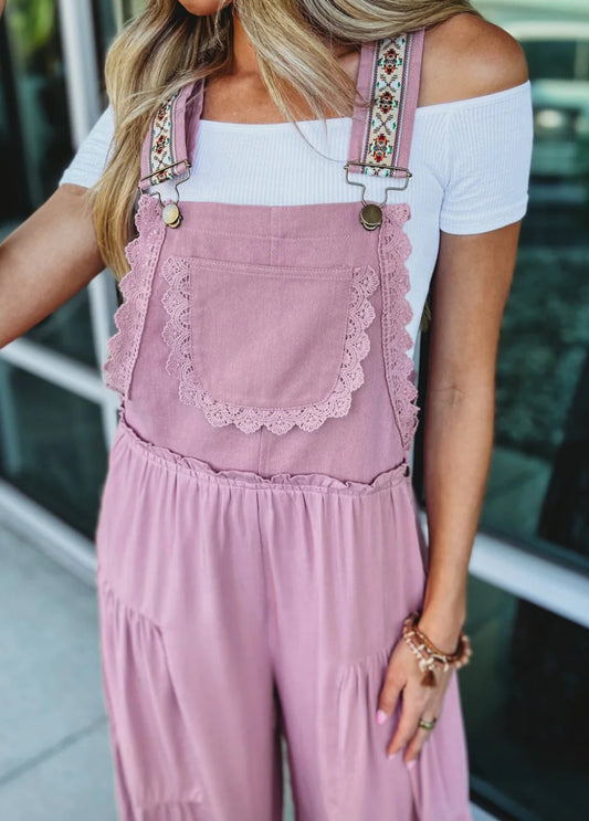 PREORDER- Lace Panel Overalls