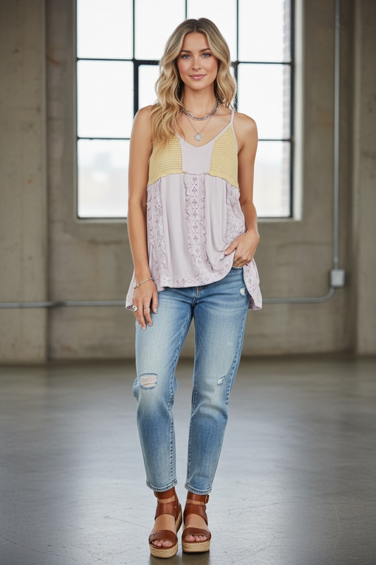 Very J Striped Crochet Sleeve Tank