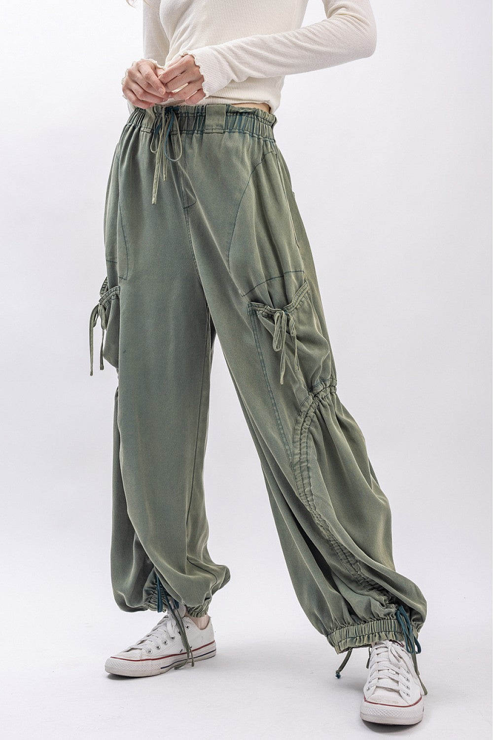 Effortlessly cool and boldly styled, the Smokey Drift Cargo Pant brings utility vibes with a laid-back twist. Crafted from ultra-soft, mineral-washed Tencel, these harem-style pants feature a low-slung fit and oversized silhouette for all-day comfort!