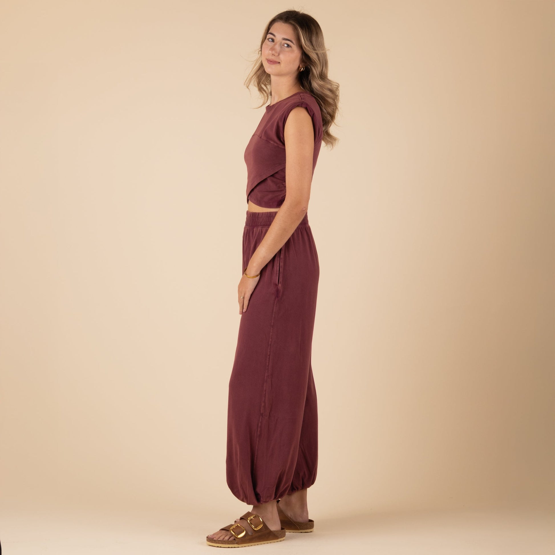 - Mineral washed cropped top showcases a modern athleisure inspired design