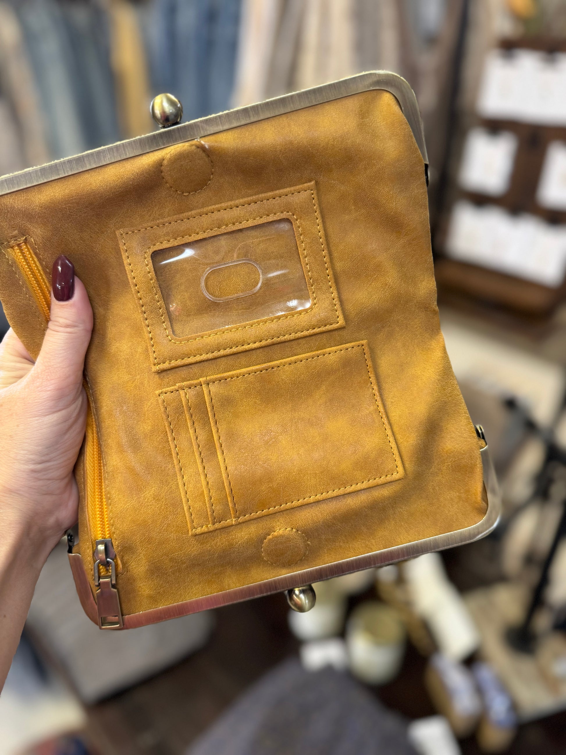 * DISCLAIMER: some customers have had trouble opening wallets. wallets open correctly but please lift up the little ball, pulling it towards you and then open it outwards. Two top frame compartments with clasp closure