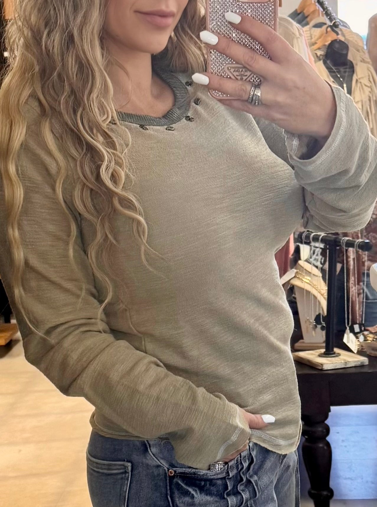 Designed in round neck, full sleeve, regular fit top in textured knit with stud detail pointed solid pattern.