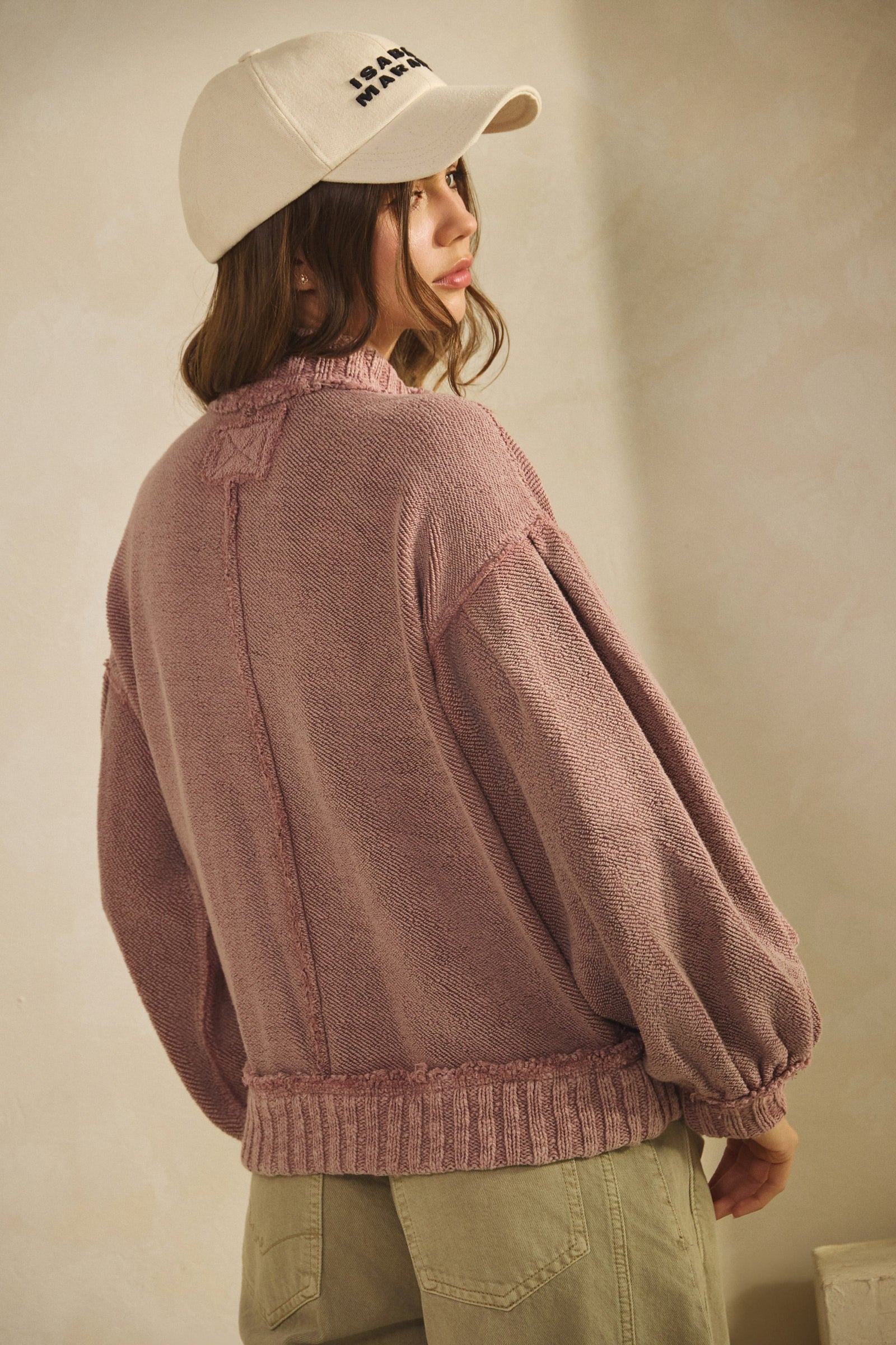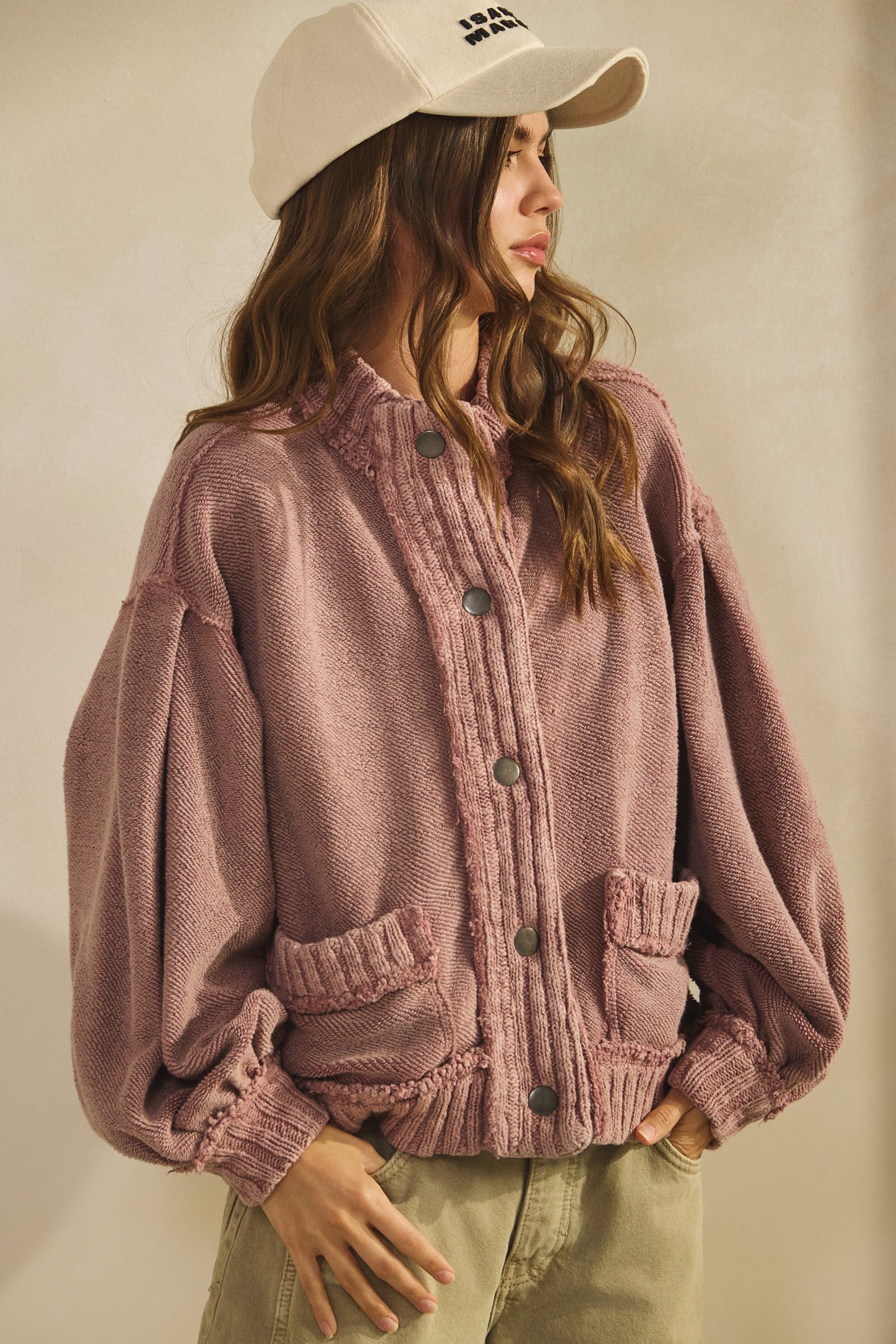WASHED VINTAGE RIBBED KNIT TRIM CARDIGAN JACKET