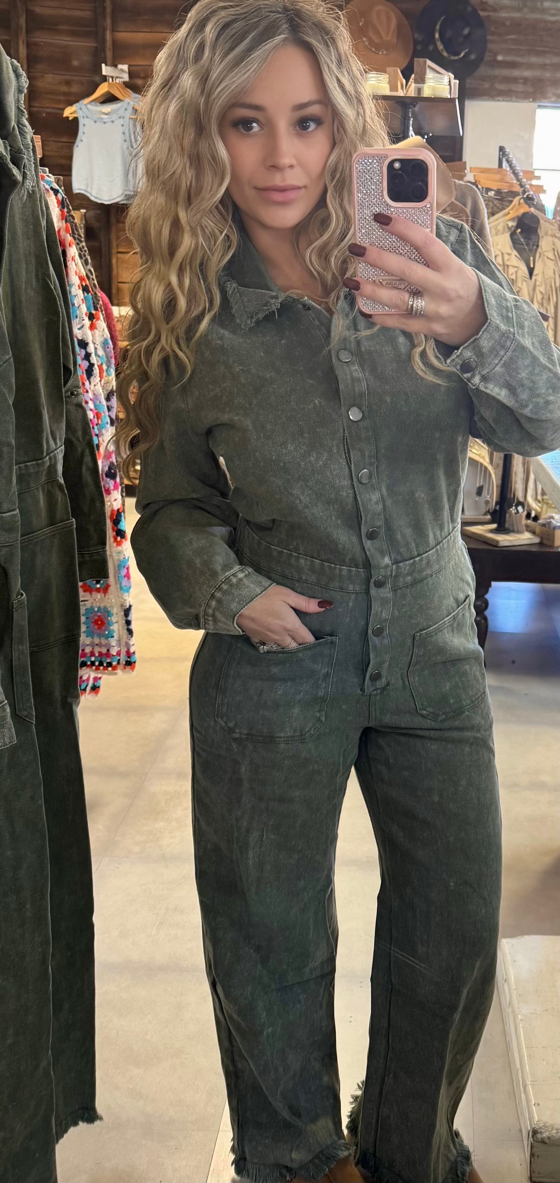 1. Stone Wash: The stone wash adds a touch of urban chic, giving the jumpsuit a trendy and edgy appearance.
