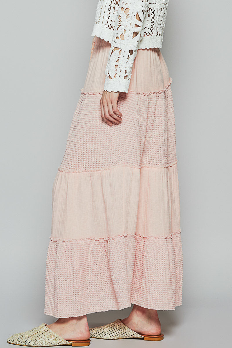 Designed In Skirt, Thermal And Double Gauze Mix With Shirring Ruffle Pointed Solid Pattern.