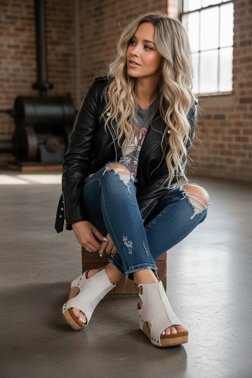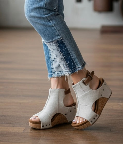 Cork wedge sole with stud accents