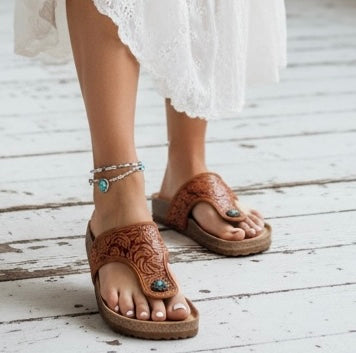 A beautiful rust color & incredibly soft faux leather tooled design.