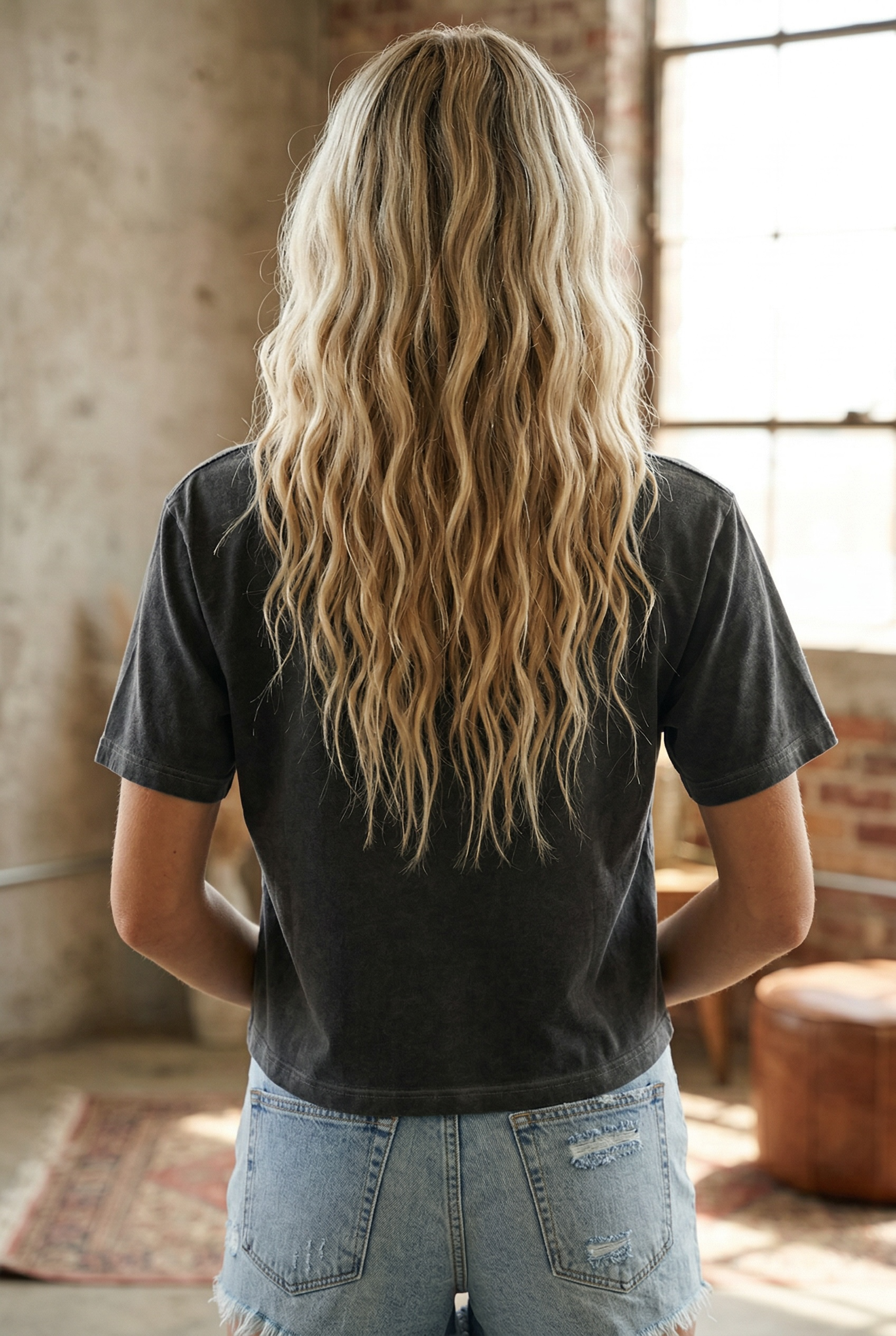 World Tour Rock N Roll Eagle Graphic, S/S Lunar Pigment Dyed Loose Fit Faux Crop Featuring Softer Washed Look Around Seam Areas.